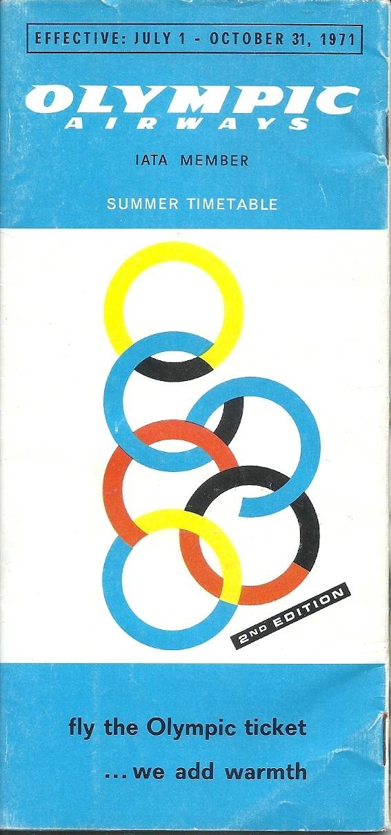 Lot2818 - ΕΛΛΑΔΑ 1971, βιβλιαράκι της Ολυμπιακής Αεροπορία με τα δρομολόγια εσωτερικού κι εξωτερικού.