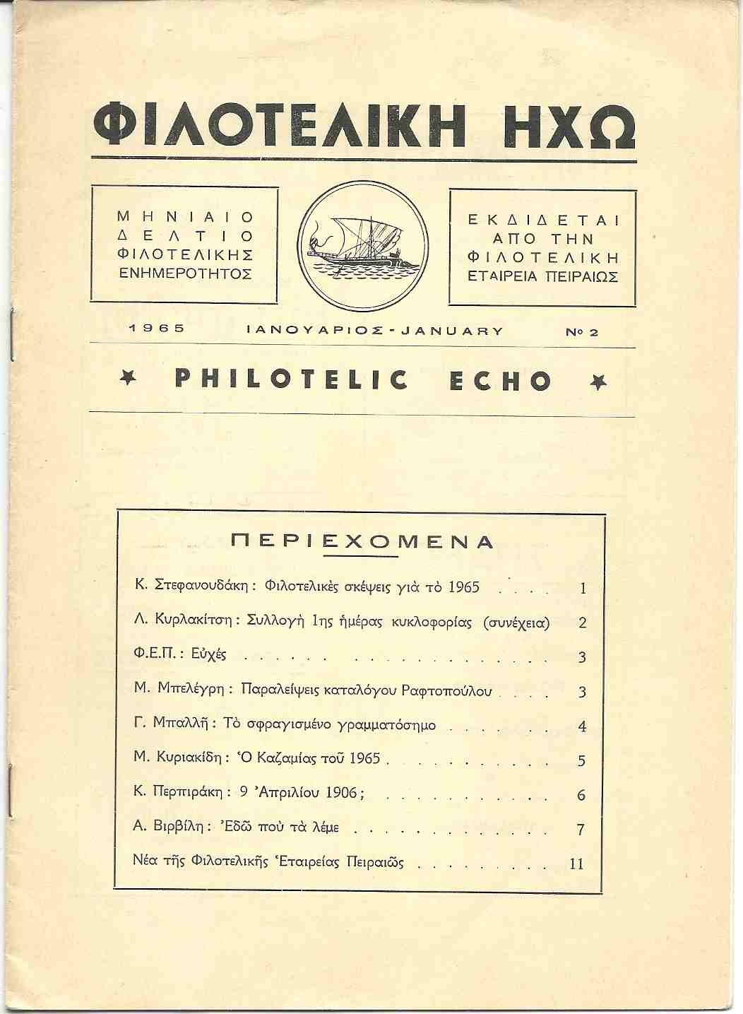 Lot2821 - ΕΛΛΑΔΑ 1965, φιλοτελικό περιοδικό ΦΙΛΟΤΕΛΙΚΗ ΗΧΩ, Νο 2.