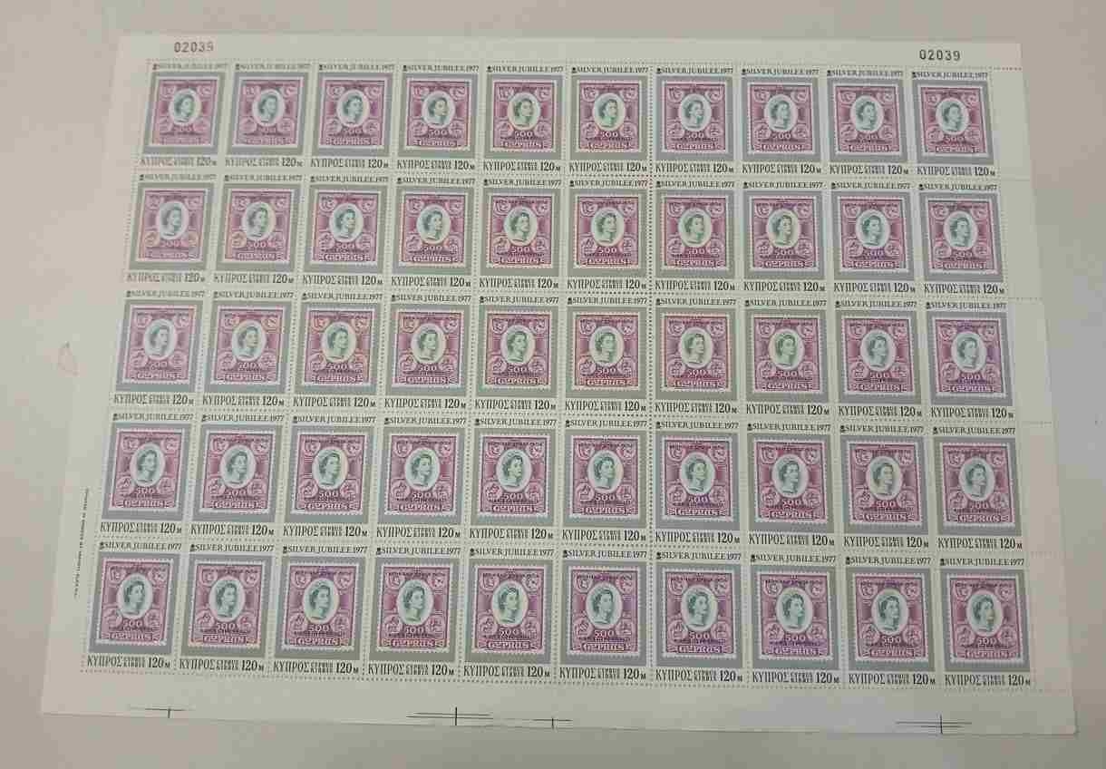 Lot1614 - ΚΥΠΡΟΣ 1977, φύλλα των 50 σειρών, αναμνηστική έκδοση για το Αργυρό Ιωβηλαίο **