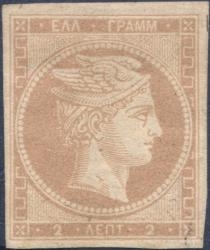 Lot0066 - ΕΛΛΑΔΑ 1862-1867 2λ κιτρινοσιτόχρωμο (Yellow bistre) *