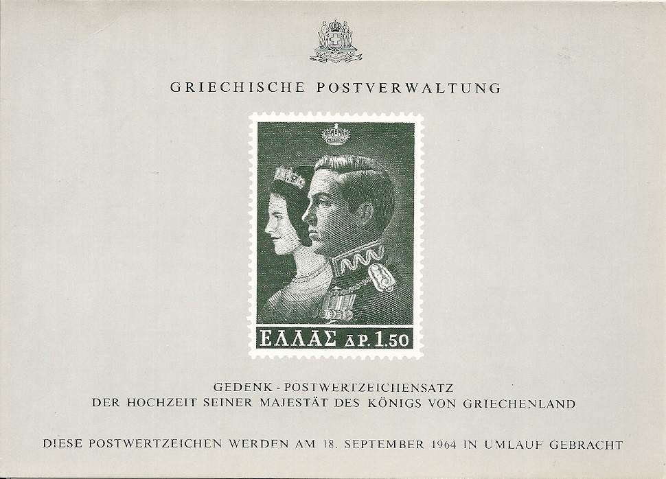 Lot1140 - ΕΛΛΑΔΑ 1964 Prospectus για τους Γάμους του Βασιλέως Κωνσταντίνου Β' και της Άννας Μαρίας της Δανίας, στην γερμανική γλώσσα