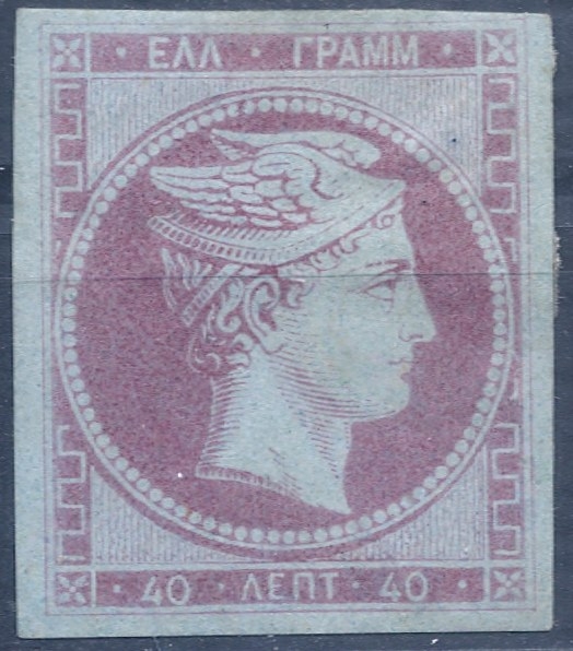 Lot0009 - ΕΛΛΑΔΑ 1861 40 λεπτά μωβ σε μπλε (mauve on blue), με λέπτυνση *