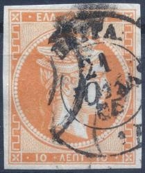 Lot0095 - ΕΛΛΑΔΑ 1862-1867 10 λεπτά κίτρινο πορτοκαλί (yellow-orange), πολύ έντονο ανάγλυφο ☉