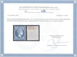 Lot0112 - ΕΛΛΑΔΑ 1862-1867 20 λεπτά μπλέ ουρανί (sky blue) με γόμμα, θέση πλάκας 148, συνοδεύεται με πιστοποιητικό Παπαθανασίου *