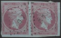 Lot0136 - ΕΛΛΑΔΑ 1862-1867 40 λεπτά μωβ έως μωβ βαθύ σε μπλε (mauve to deep mauve on blue) ζευγάρι ☉/bl2