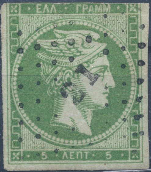 Lot0052 - ΕΛΛΑΔΑ 1861-1862 5 λεπτά πράσινο βαθύ (green green) ☉