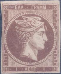 Lot0068 - ΕΛΛΑΔΑ 1862-1867 1 λεπτό καφέ γαλακτώδες (milky brown) με οριζόντιο γραμμωτό βάθος και σφάλματα πλάκας *