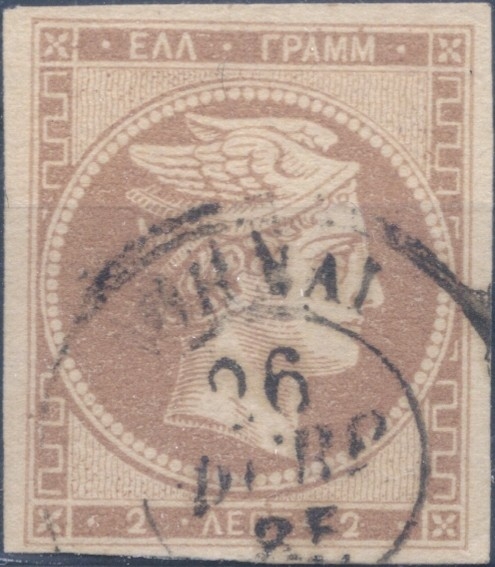 Lot0083 - ΕΛΛΑΔΑ 1862-1867 2 λεπτά καστανοσιτόχρωμο (brown bistre) ☉