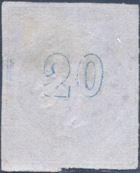 Lot0111 - ΕΛΛΑΔΑ 1862-1867 20 λεπτά μπλε ουρανί (sky blue) με λέπτυνση ☉