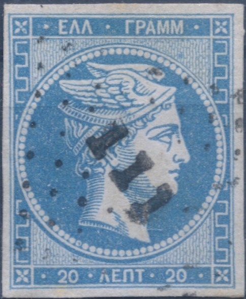 Lot0120 - ΕΛΛΑΔΑ 1862-1867 20 λεπτά μπλε-γκρι (grey-blue), σε λεπτό χαρτί ☉