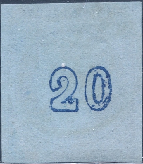 Lot0241 - ΕΛΛΑΔΑ 1871-1876 20 λεπτά μπλε σε μπλε (blue on blue) ☉