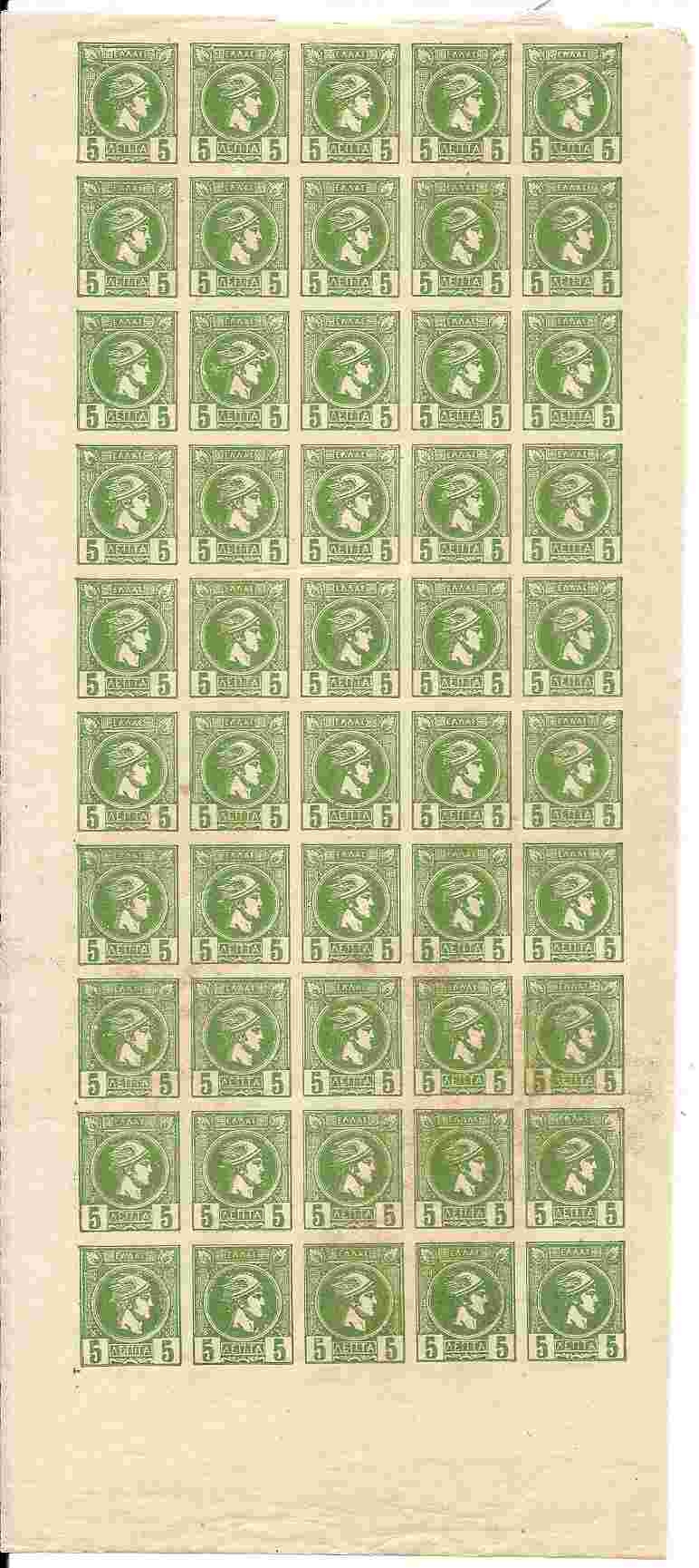 Lot0439 - ΕΛΛΑΔΑ φύλλο των 50 τεμαχίων με Μικρή Καφαλή Ερμή 5λ, εκδόσεις Αθηνών **