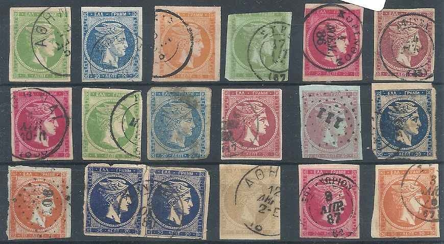 Lot0446 - ΕΛΛΑΔΑ Λαχνός με 18 τεμάχια Μεγάλων Κεφαλών Ερμή διαφόρων τύπων και αξιών ☉
