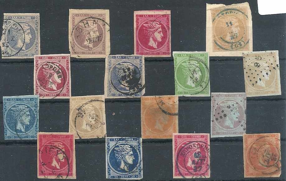Lot0447 - ΕΛΛΑΔΑ Λαχνός με 16 τεμάχια Μεγάλων Κεφαλών Ερμή διαφόρων τύπων και αξιών ☉