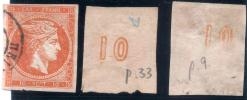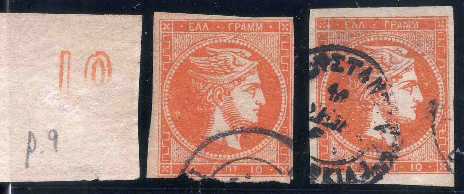 Lot0449 - ΕΛΛΑΔΑ Λαχνός με 3 τεμάχια Μεγάλων Κεφαλών Ερμή με ανεστραμμένο το 1 στον ΑΕ και διάφορα plate flaws ☉