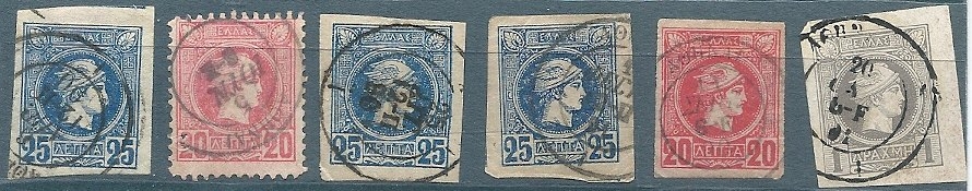 Lot0450 - ΕΛΛΑΔΑ Λαχνός με 6 τεμάχια Μικρών Κεφαλών Ερμή με σφραγίδα ΑΘΗΝΑ τύπου ΙΙ ☉