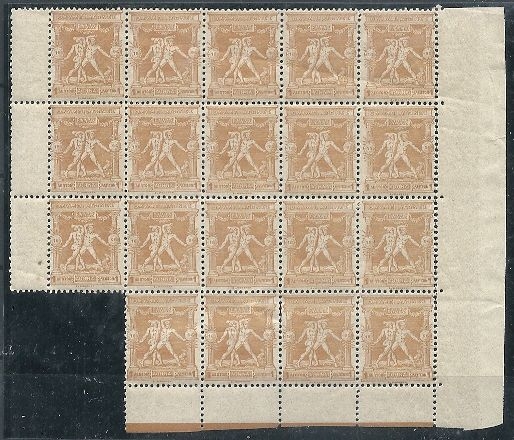 Lot0506 - ΕΛΛΑΔΑ 1896 1 λεπτό Ολυμπιακοί Αγώνες σε μπλόκ των 19 τεμαχίων κάτω δεξιά **/bl19