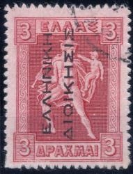 Lot0537 - ΕΛΛΑΔΑ 1912-1913 3 δρχ, επισήμανση Ελληνική Διοίκηση σε χαλκογραφικό, από κάτω προς τα πάνω ☉