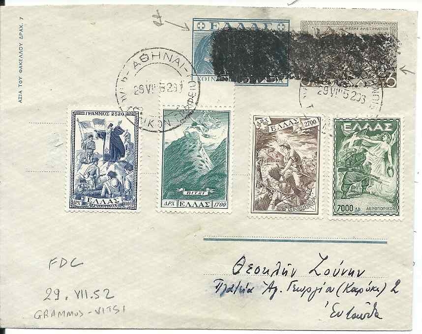 Lot1049 - ΕΛΛΑΔΑ 1952 ΦΠΗΚ (Α) με την αεροπορική σειρά ΓΡΑΜΜΟΣ-ΒΙΤΣΙ ✉