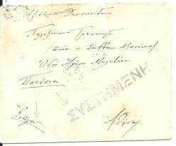 Lot1303 - ΕΛΛΑΔΑ επιστολή Έλληνα με γραμματόσημο 20 λεπτών Ιπτάμενου Ερμή & ευθύγραμμη σφραγίδα ΣΥΣΤΗΜΕΝΗ