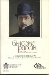 Lot2510 - ΣΑΝ ΜΑΡΙΝΟ 2014, αναμνηστικό, επετειακό, επίσημο 2€ για τα 90 χρόνια από τον θάνατο του Giacomo Puccini.