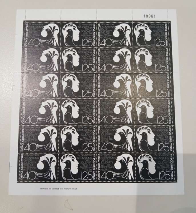 Lot1623 - ΚΥΠΡΟΣ 1980, φύλλα των 12 σειρών, για την ΑΛΗΛΛΕΓΓΥΗ ΠΡΟΣ ΤΟΝ ΠΑΛΑΙΣΤΙΝΙΑΚΟ ΛΑΟ **
