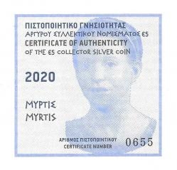 Lot2525 - ΕΛΛΑΔΑ 2020, Μύρτις , 5 ευρώ ασημένιο