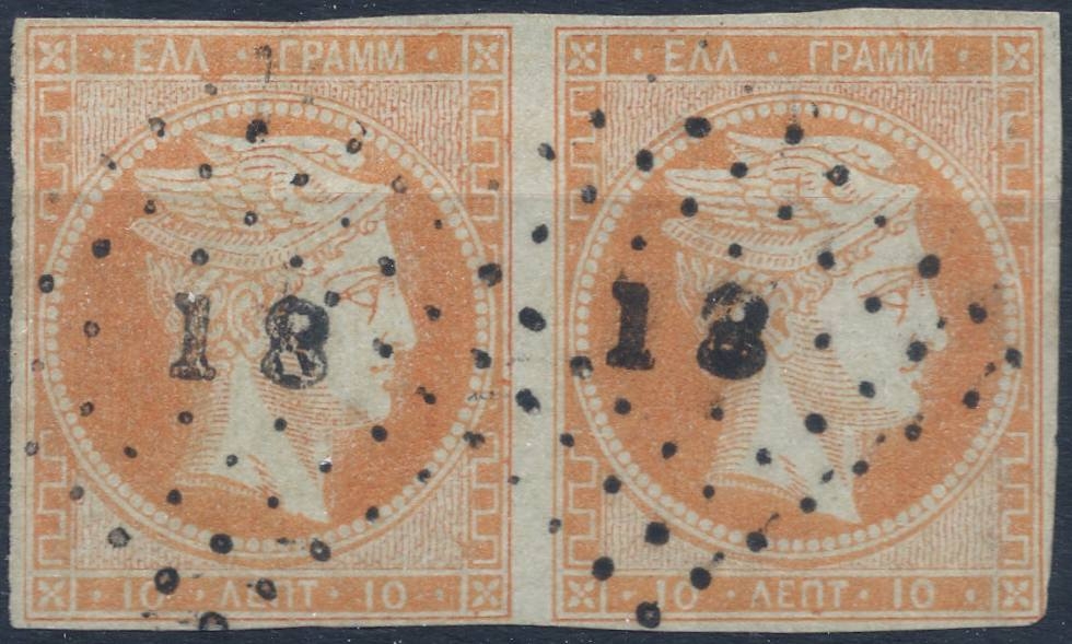 Lot0038 - ΕΛΛΑΔΑ 1861-1862 10 λεπτά πορτοκαλί αποχρώσεις ζευγάρι, (orange shades) ☉/bl2