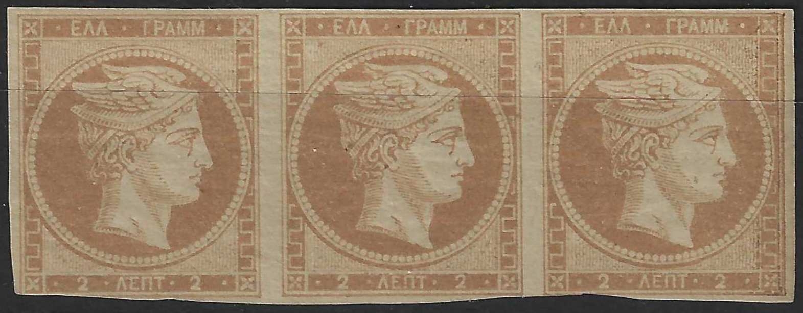 Lot0045 - ΕΛΛΑΔΑ 1861-1862 2 λεπτά τριάδα οριζόντια σιτόχρωμο (bistre) */bl3