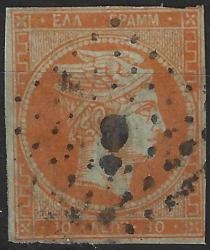 Lot0052 - ΕΛΛΑΔΑ 1861-1862 10 λεπτά απέχοντες αριθμοί ΑΕ (widely spaced CF) πορτοκαλί αποχρώσεις (orange shades) ☉