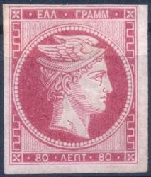Lot0117 - ΕΛΛΑΔΑ 1862-1867 80 λεπτά καρμινόχρωμο (carmin), με πορτοκαλί ΑΕ (with orange CF) *