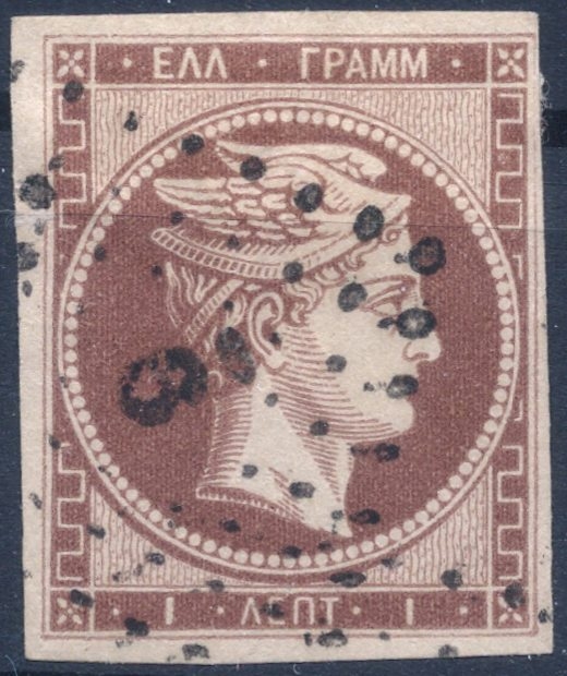 Lot0064 - ΕΛΛΑΔΑ 1862-1867 1 λεπτό καφέ σοκολατί (chocolate brown) ☉