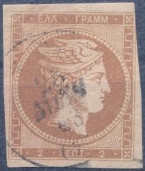 Lot0067 - ΕΛΛΑΔΑ 1862-1867 2 λεπτά κιτρινοσιτόχρωμο (yellow bistre) ☉