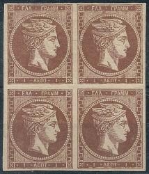 Lot0065 - ΕΛΛΑΔΑ 1862-1867 1 λεπτό καφέ (brown), με σφάλμα πλάκας κάτω αριστερά σπασμένος κύκλος & τριτογενές σφάλμα το πάνω ΔΕ */bl4