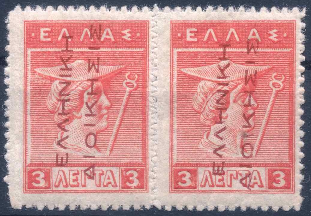 Lot0545 - ΕΛΛΑΔΑ 1912-1913 3 λεπτά χαλκογραφικό ζευγάρι, κάρμιν **/bl2