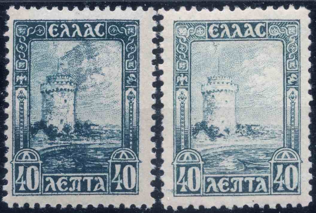 Lot0590 - ΕΛΛΑΔΑ 1927, 40 λεπτά έκδοση Τοπίων Α' με υπερμελάνωση ποικιλίας *
