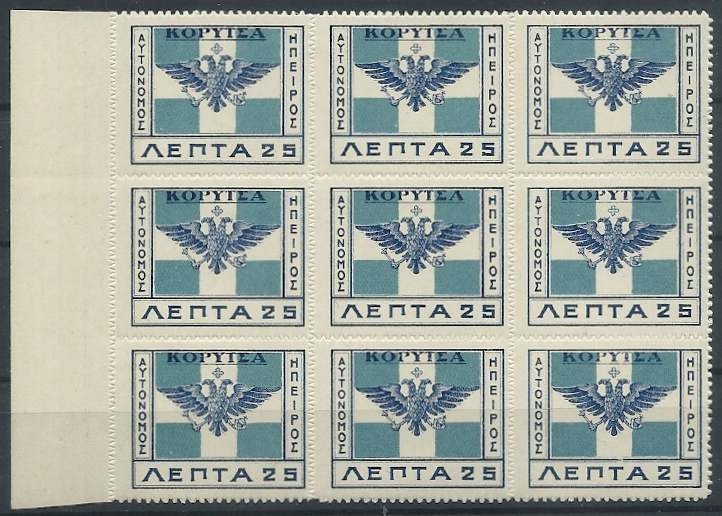 Lot0861 - ΕΛΛΑΔΑ 1914, Νέες χώρες, Ήπειρος Κορυτσά 25 λεπτά σε κομμάτι φύλλου των εννέα (9) γραμματοσήμων **/bl9