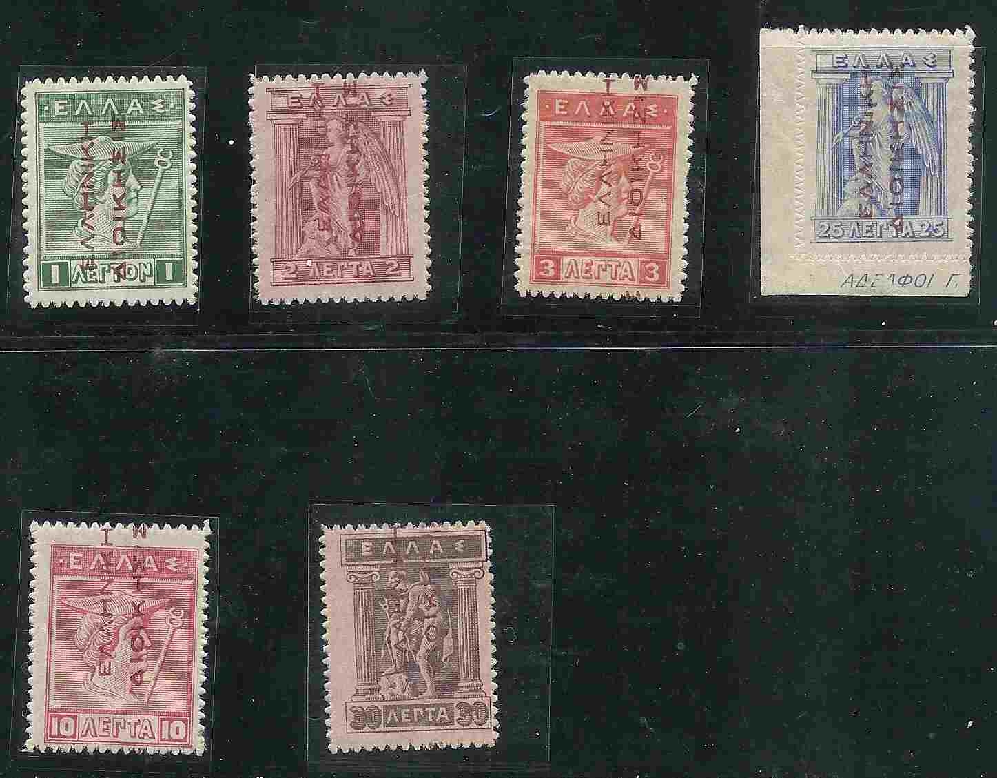 Lot0540 - ΕΛΛΑΔΑ 1912-1913 με επισήμανση κόκκινη ΕΛΛΗΝΙΚΗ ΔΙΟΙΚΗΣΙΣ από κάτω προς τα πάνω με διάφορες αξίες **
