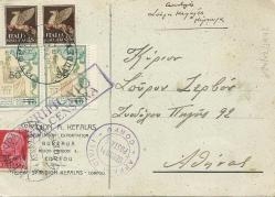 Lot0924 - ΕΛΛΑΔΑ 1942, Νέες χώρες, ΙΟΝΙΟ Ιταλική Κατοχή, ιδιωτικό PS από Κέρκυρα ρος Αθήνα, Ιταλική λογοκρισία 3 αξίες ISOLE JONIE & ζεύγος Πρόνοιες 50/10λ ✉