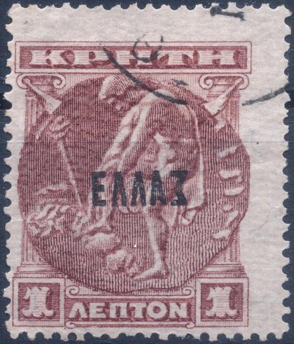 Lot0946 - ΕΛΛΑΔΑ 1908, Νέες χώρες, Κρήτη, με επισήμανση μικρό ΕΛΛΑΣ σε κοινά γραμματόσημα 1λ με ανεστραμμένο Σ ☉