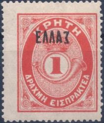 Lot0949 - ΕΛΛΑΔΑ 1908, Νέες χώρες, Κρήτη, με επισήμανση μικρό ΕΛΛΑΣ σε εισπρακτέα του 1901 1 δρχ με ανεστραμμένο Σ, εξαιρετικά σπάνιο *