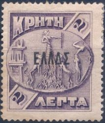 Lot0952 - ΕΛΛΑΔΑ 1908, Νέες χώρες, Κρήτη, με επισήμανση μικρό ΕΛΛΑΣ σε κοινά γραμματόσημα 2λ με σφάλμα ΕΛΛΔΣ ☉