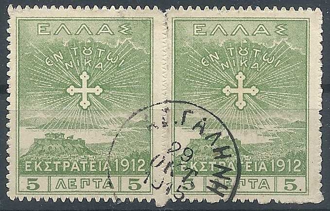 Lot0955 - ΕΛΛΑΔΑ 1915, Νέες χώρες, Κρήτη, σφραγίδα ΑΓ ΓΑΛΗΝΗ σε ζεύγος 5λ εκστρατείας ☉/bl2