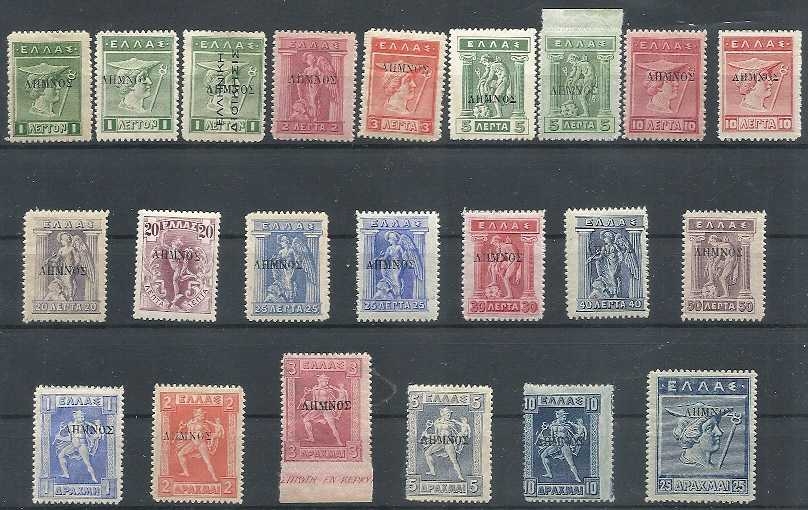 Lot0957 - ΕΛΛΑΔΑ 1912-1913, Νέες χώρες, ΛΗΜΝΟΣ, με επισήμανση ΛΗΜΝΟΣ, 22 αξίες **/*