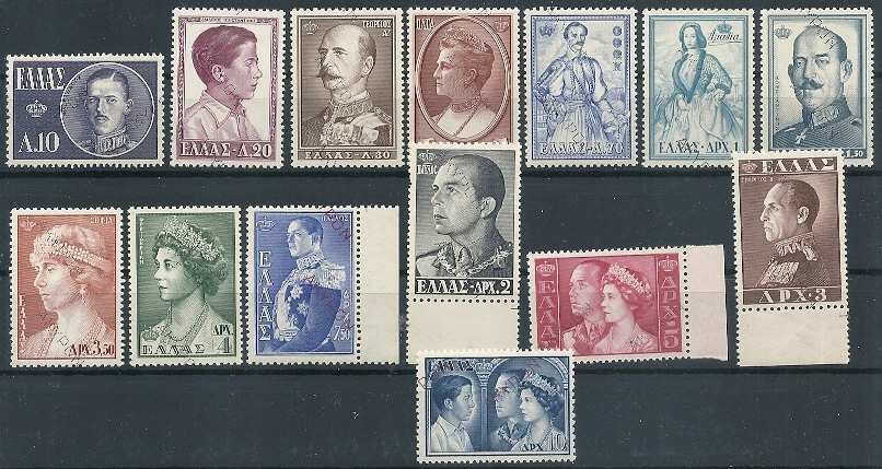 Lot0705 - ΕΛΛΑΔΑ 1956 τακτική έκδοση Βασιλέων της Ελλάδος - σειρά Α' με κόκκινη - μαύρη επισήμανση ΑΚΥΡΟΝ **