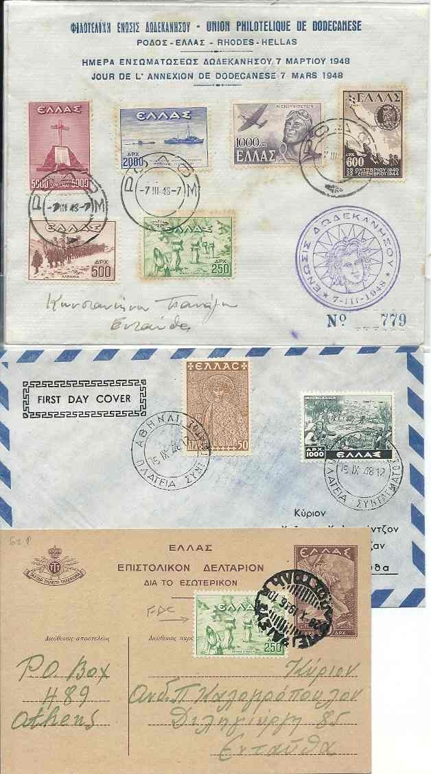 Lot1014 - ΕΛΛΑΔΑ 1946-1948 ΦΠΗΚ σετ τριών φακέλλων με διαφορετικές ημερομηνίες, έκδοση ΝΙΚΗΣ ✉
