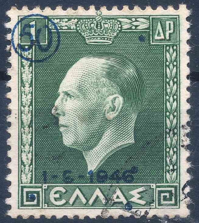 Lot0668 - ΕΛΛΑΔΑ 1946, αναμνηστική έκδοση Δημοψηφίσματος 50δ/1δ με σφάλμα επισήμανσης 1-6-1946 αντί για 1-9-1946 ☉