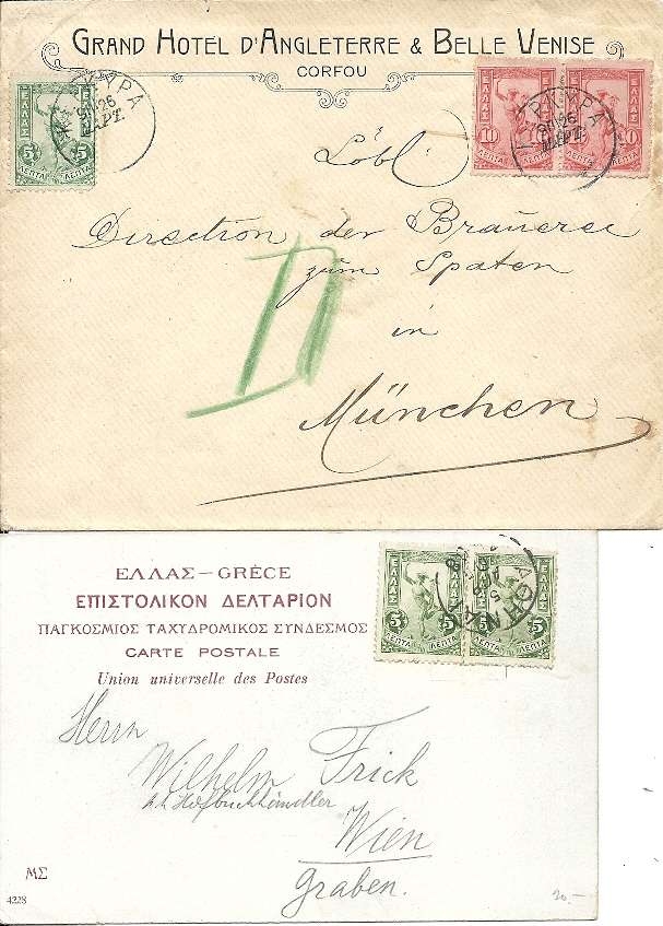 Lot1306 - ΕΛΛΑΔΑ λαχνός με φάκελλο και Επιστολικό Δελτάριο ταχυδρομημένα με Ιπτάμενο Ερμή
