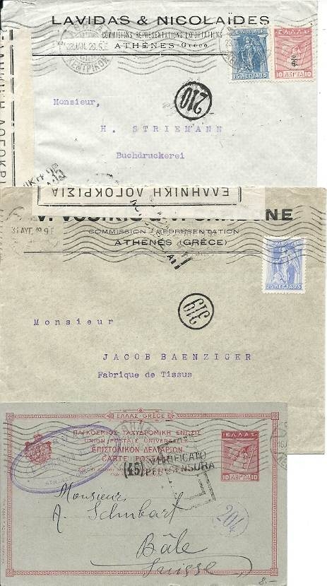 Lot1307 - ΕΛΛΑΔΑ λαχνός με 2 φακέλλους και Επιστολικό Δελτάριο ταχυδρομημένα με λογοκρισία