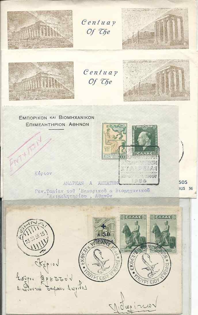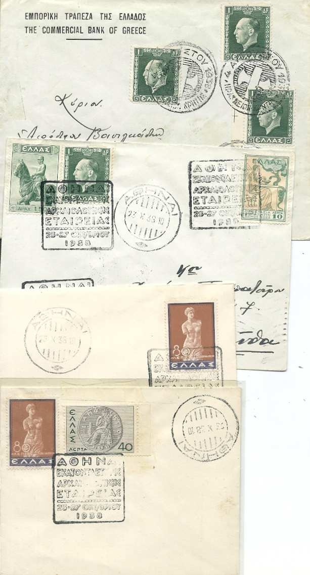 Lot1312 - ΕΛΛΑΔΑ 1938 οκτώ (8) φάκελλοι με αναμνηστικές σφραγίδες 4ης ΑΥΓΟΥΣΤΟΥ - 100 χρόνια Αρχαιολογικής Εταιρείας - Έκθεση Υγιεινής
